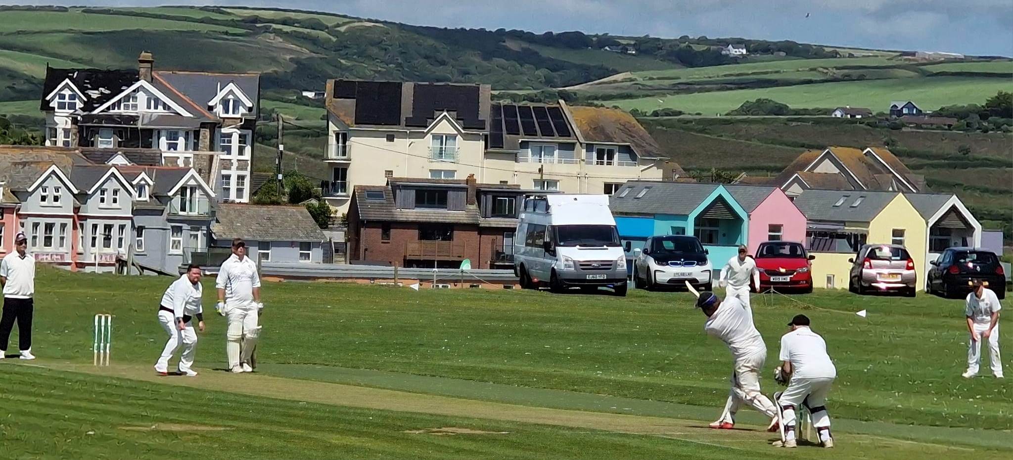 Saturday saw a long trip north to Bude, made slower by holiday traffic, which made several players almost late. Fortunately Gunnislake won the toss and were able to choose to bat. Two early wickets left Gunnislake in trouble, but Stephen Lees and Russ Holloway began to rebuild the innings. Lees was out for 29 with the score on 54, but Holloway continued with excellent support from Joe Organ. On a large ground boundaries were hard to come by, but the runs accumulated steadily, with Holloway launching one six to one of the longest boundaries. The score had reached 126 before Organ fell to an superb running catch on the long-on boundary by Ryan Chalkley. From that point Bude fought back, with third change bowler Charlie Gliddon mesmerising the Gunnislake batsmen. His first victim was Holloway, who missed a straight one trying to manoeuvre it into the offside. By then Holloway had progressed to 69, his third half century of the season. The team score was up to 138 for 4. However, from there Gunnislake seemed anxious to get in for the tea. Wickets tumbled and Gunnislake were all out for 157, three runs short of a fourth batting point with nearly two overs unused. Gliddon finished with figures of 4 for 10, receiving support from Mike Taylor who took three of his own.